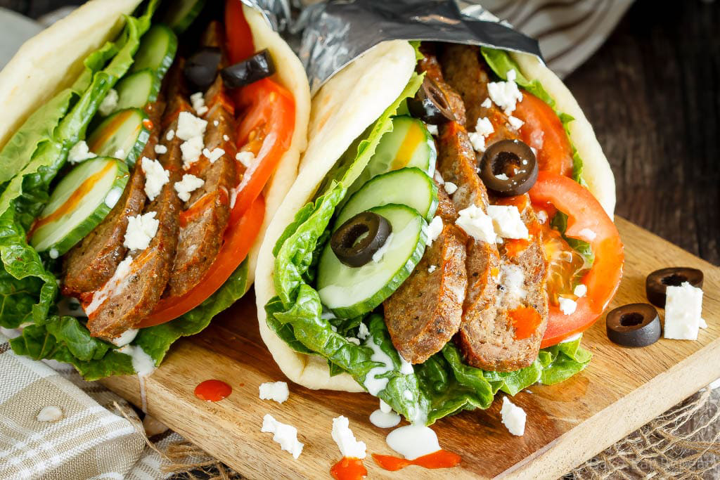 Lettuce, tomato, red onion, cheese and choice of sweet, or Tzatziki sauce